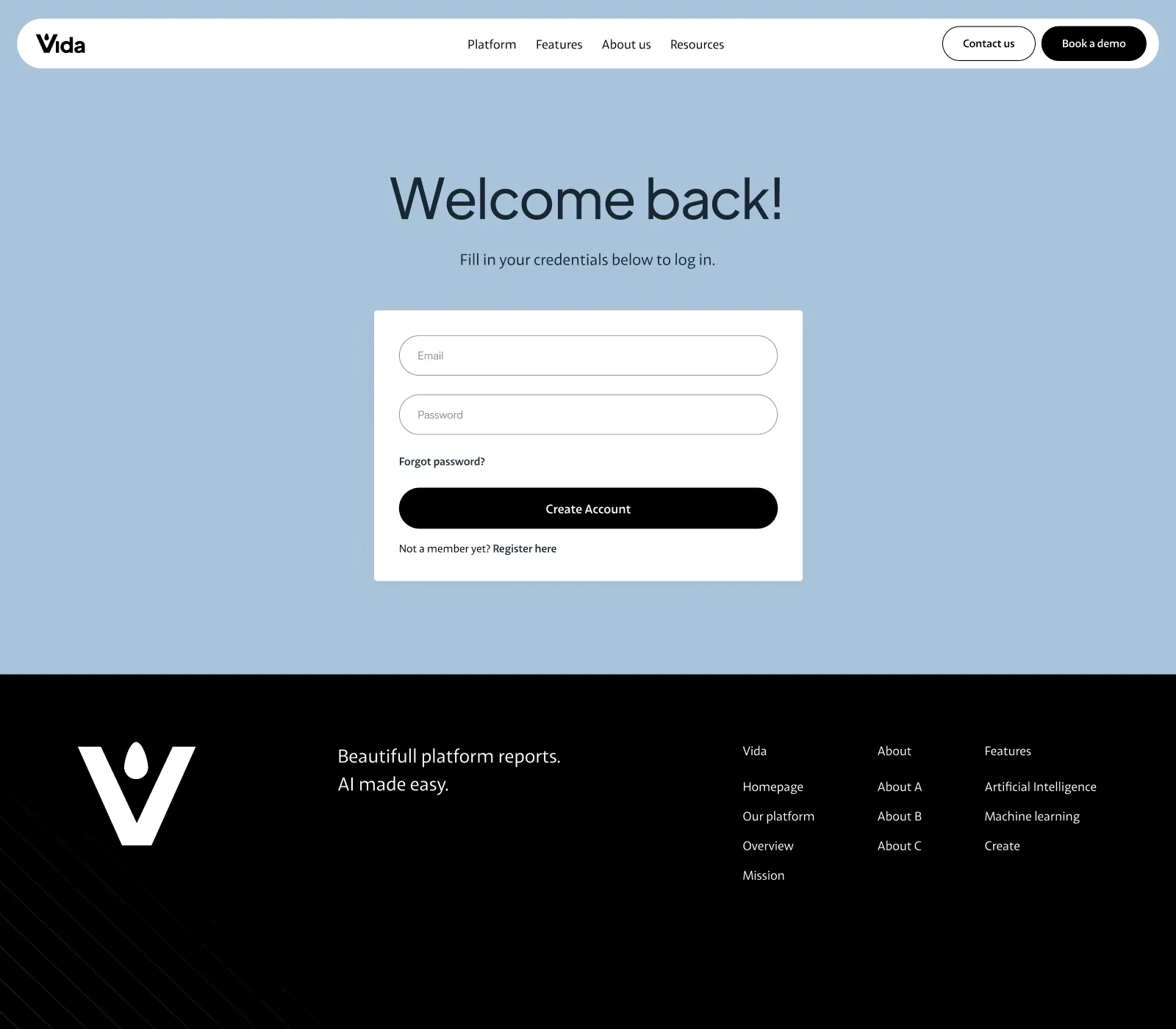 Vida Webflow Template comes with everything you need to to get your startup site off the ground.
